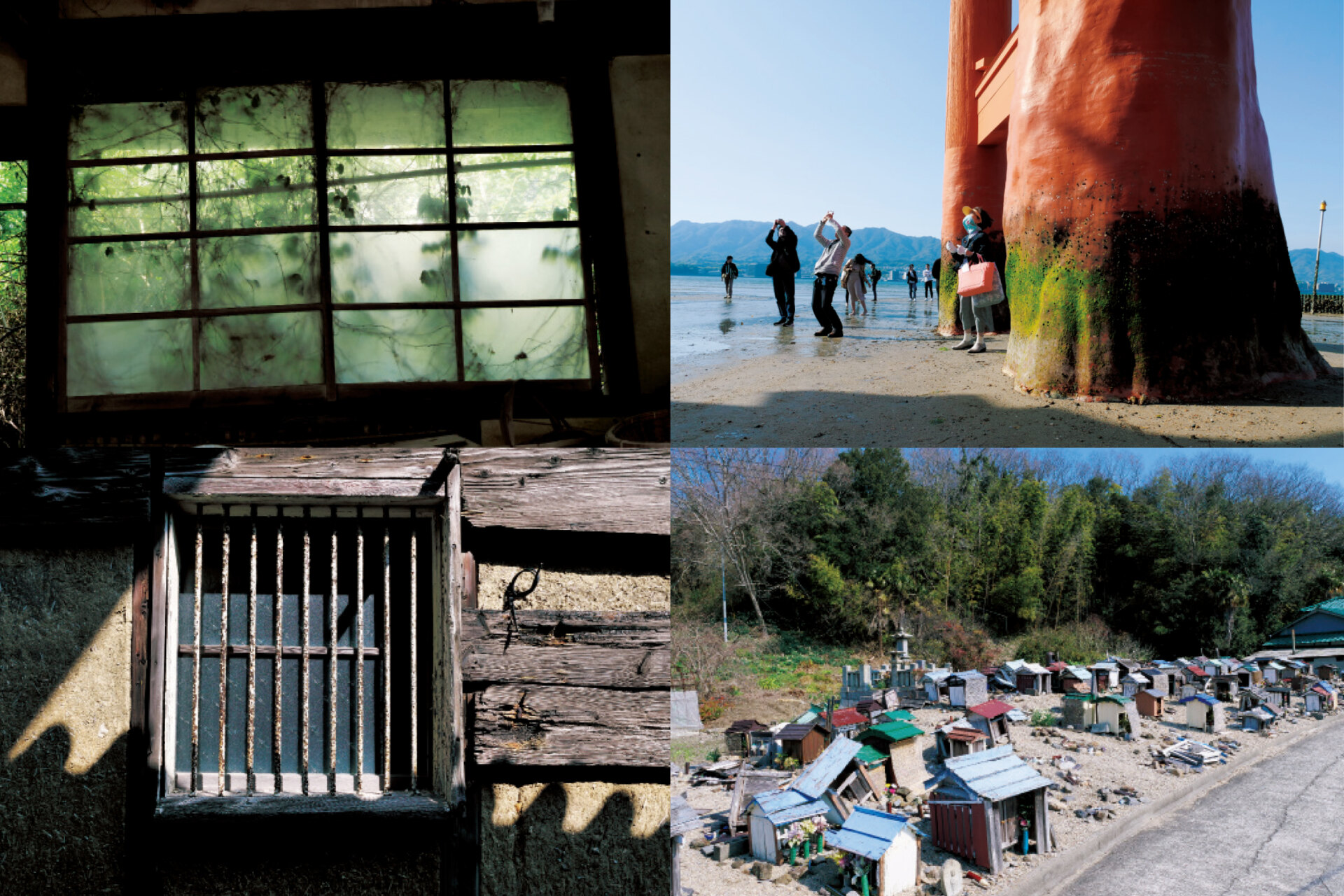 「菓子職人の小屋 デタント(旧店舗)」の厨房に山田脩二さんの写真集2冊の校正刷りを展示します。最新作『カラー版 『日本村』2022-2024 島』(2024年、ぴあ)は新型コロナ自粛ムードが漂う中、瀬戸内海を中心に約40の島を巡った軌跡。佐賀では武雄・貴船神社や唐津・馬渡島の風景も描写されています。対照的にモノクロが際立つ『山田脩二 日本村1960-2020』(2020年、平凡社)の写真は戦後日本の60年間を絶妙な距離感で残した貴重な作品。高度経済成長が街を変えていく様子をクールに写し出します。
